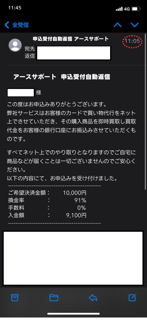 実際に、アースサポートで現金化を体験した結果をご紹介します。