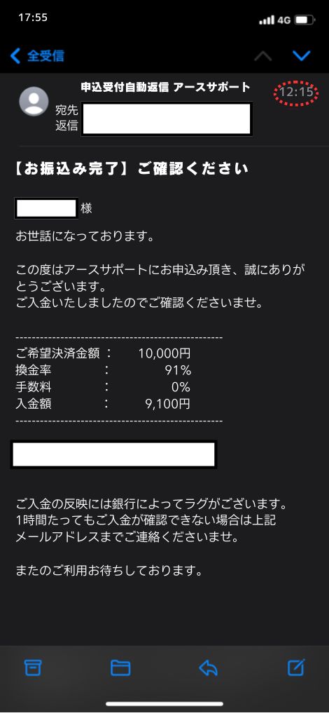 スタッフからの返信も早く、「確認できました」とメッセージが届いた時点で振込準備が進行。