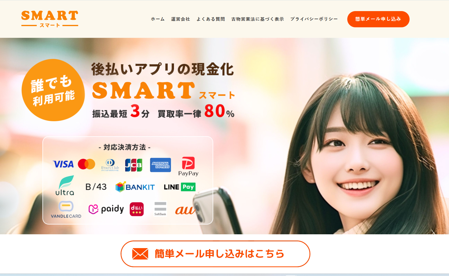当サイトでは新しく誕生した「スマート」という現金化業者をおすすめしています!